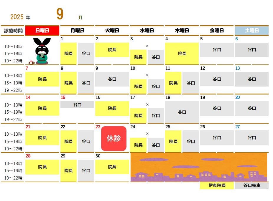 令和7年9月の診療案内です。