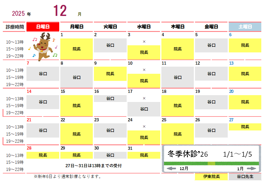 新年は1月6日(火)からの診療となります。